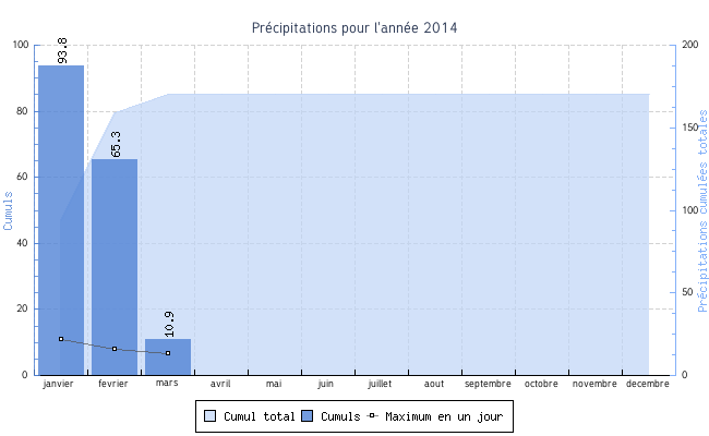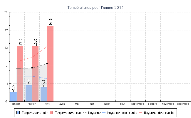 | mars | -0.2 °C | 2.7 °C | 20.3 °C | 13.5 °C | 7.8 °C | 1.9 km/h | 16.9 km/h | SSO |