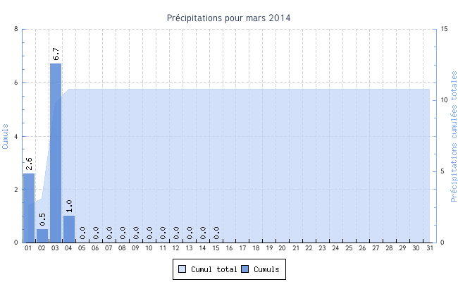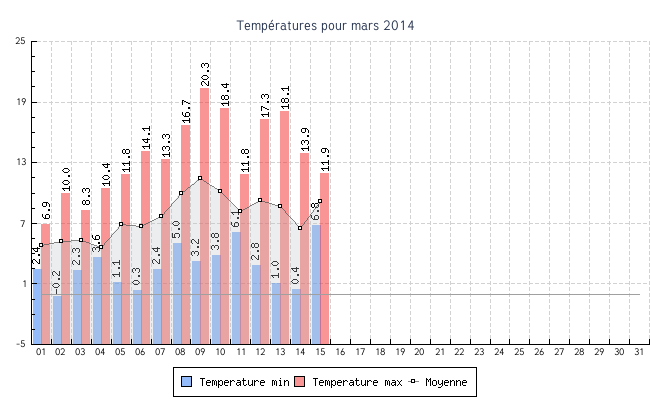 | 06 | 0.3 °C | 14.1 °C | 6.7 °C | 0.6 km/h (8.3 km/h) | SSE |